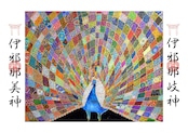 孔雀の体は地球を表し、背景の黒は宇宙を表現しています。孔雀の羽は八百万の神々、全ての生命が輝くことで美しい地球が創造されます。